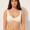 Fully lined Brazilian bikini bottoms. Made from refined shiny lamé fabric offering a bright and sophisticated effect. The slightly rounded waist at the front allows for wear with classic coverage or a higher leg, depending on your body shape.