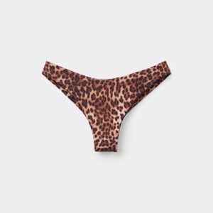 Fully lined Brazilian bikini bottoms. The style features an elegant animal pattern. The slightly rounded waist at the front allows for wear with classic coverage or a higher leg, depending on your body shape.