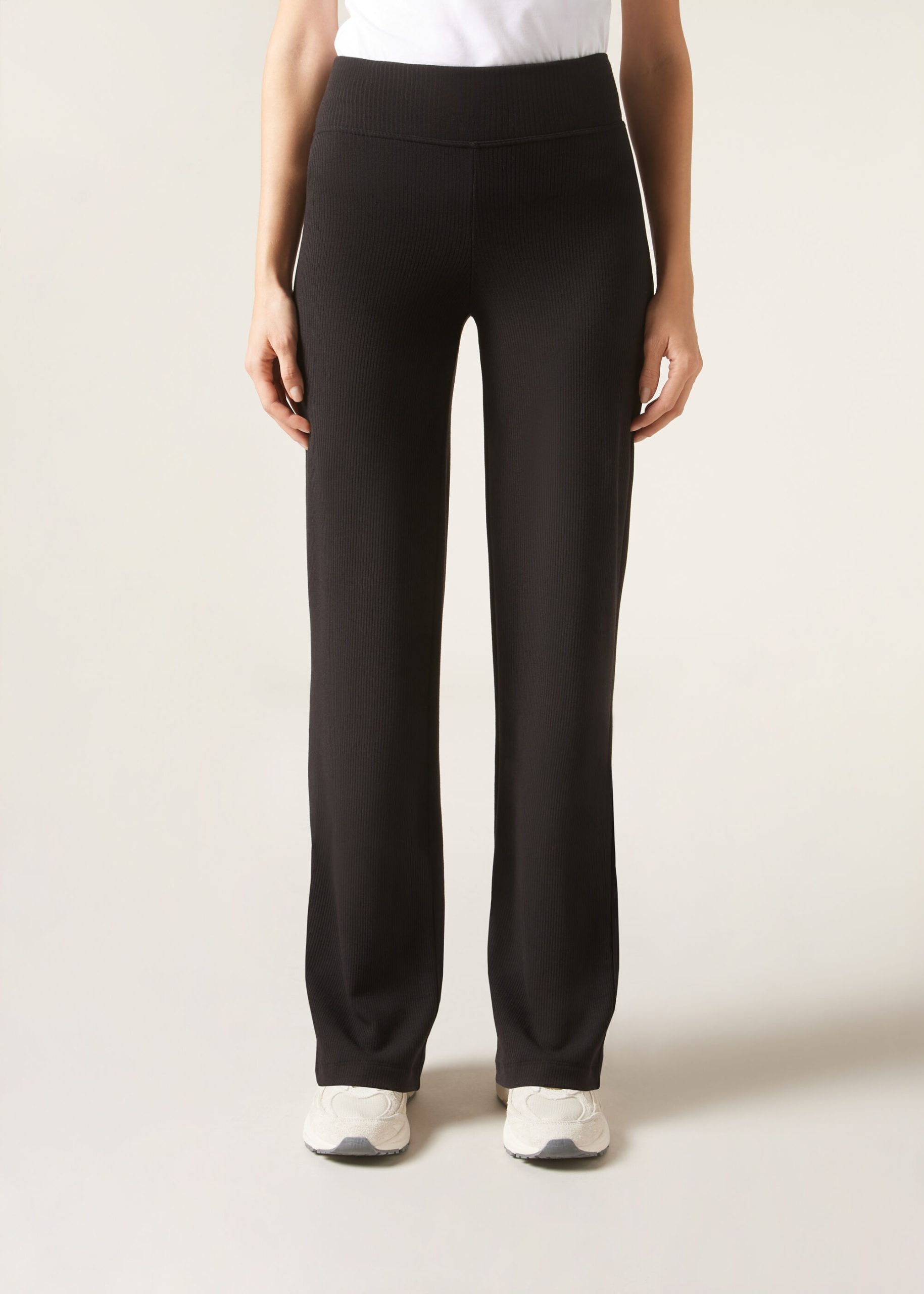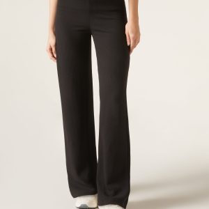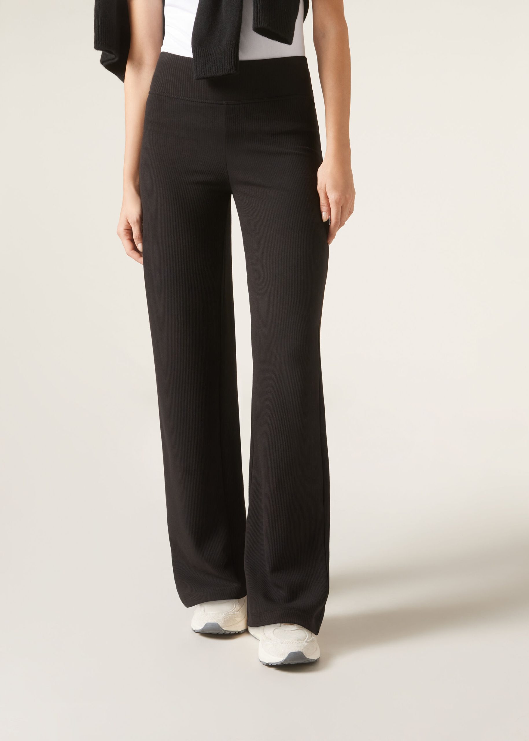 Women’s ribbed cashmere blend modal palazzo pants featuring a comfortable, elastic-free high waist. The fabric is opaque, soft, and breathable, with a brushed interior for a warm and comfortable effect, perfect to combine style and comfort on the coldest days.
