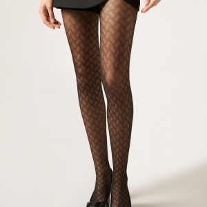 Fifty denier mesh tights with a crisscross pattern, soft waistband and cotton gusset. Original and trendy, they add character and style to your outfit.