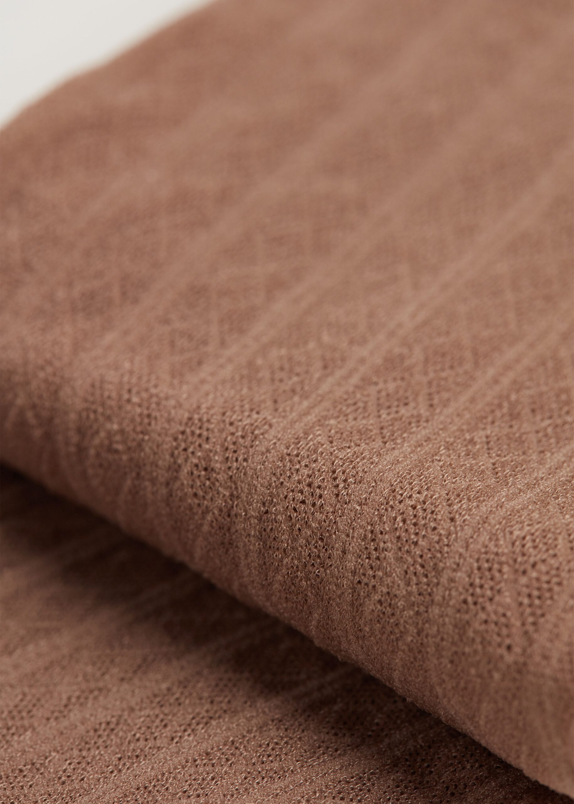 Women’s knee highs in a vertical diamond pattern with a soft, straight cuff, made in Q-Nova eco-sustainable fiber.