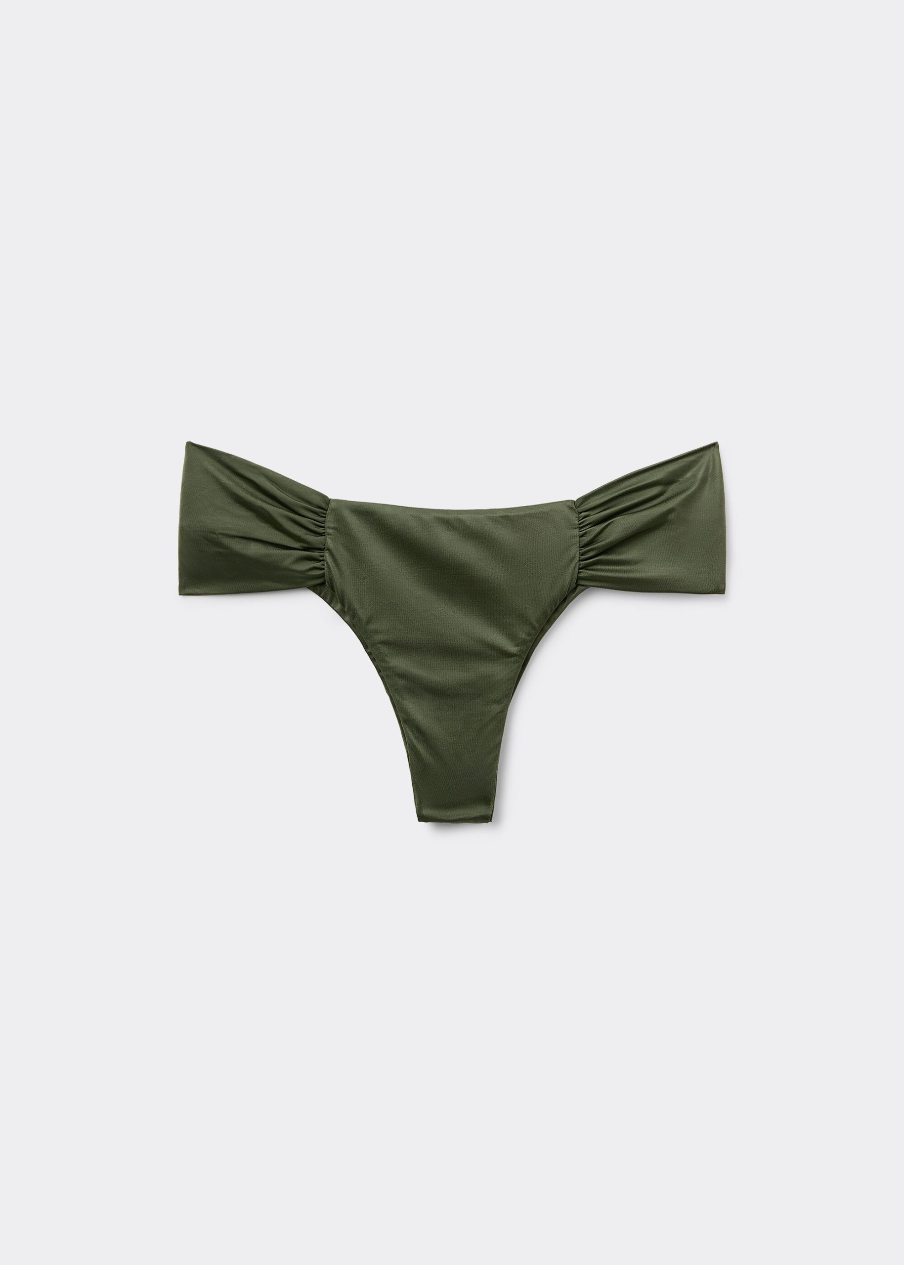 Brazilian bikini bottom with draped fabric at the sides that allow the height to be adjusted. The style features a particularly soft, shiny, silky-effect fabric. Fully lined and with invisible seams.