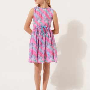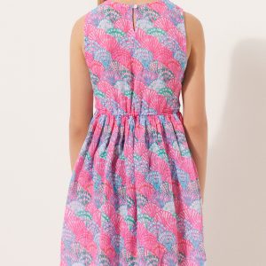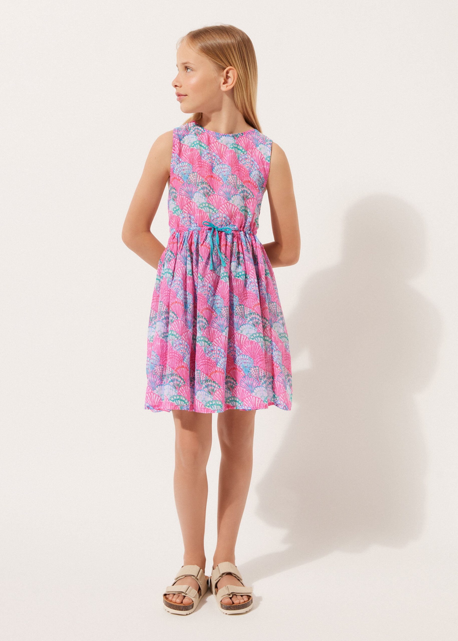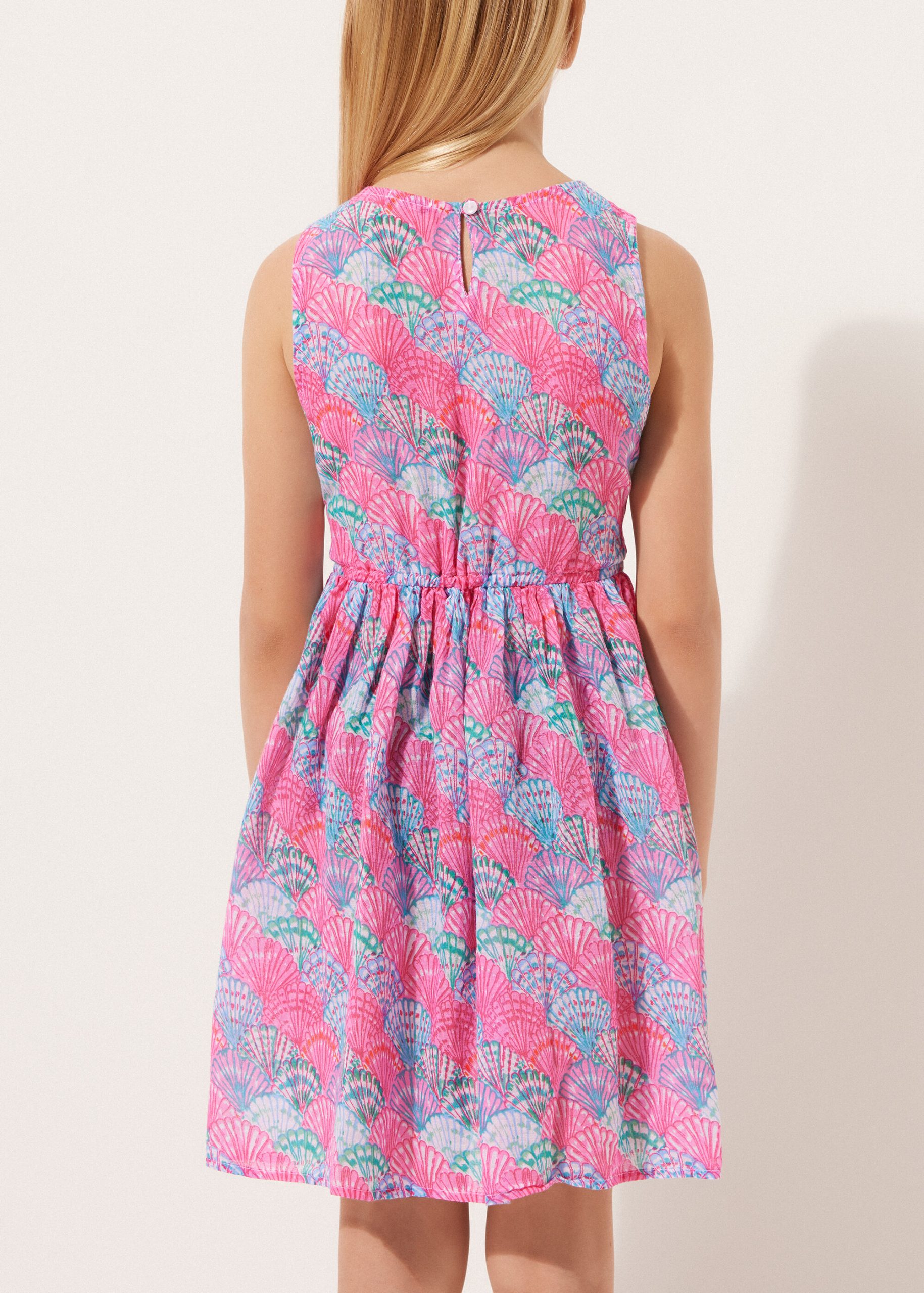 Girls’ dress in soft cotton, perfect as a cover-up. Lightweight and cool, it features a delicate colorful pattern that adds a touch of sweetness. Ideal for days at the beach or in the pool, it offers comfort and freedom of movement.