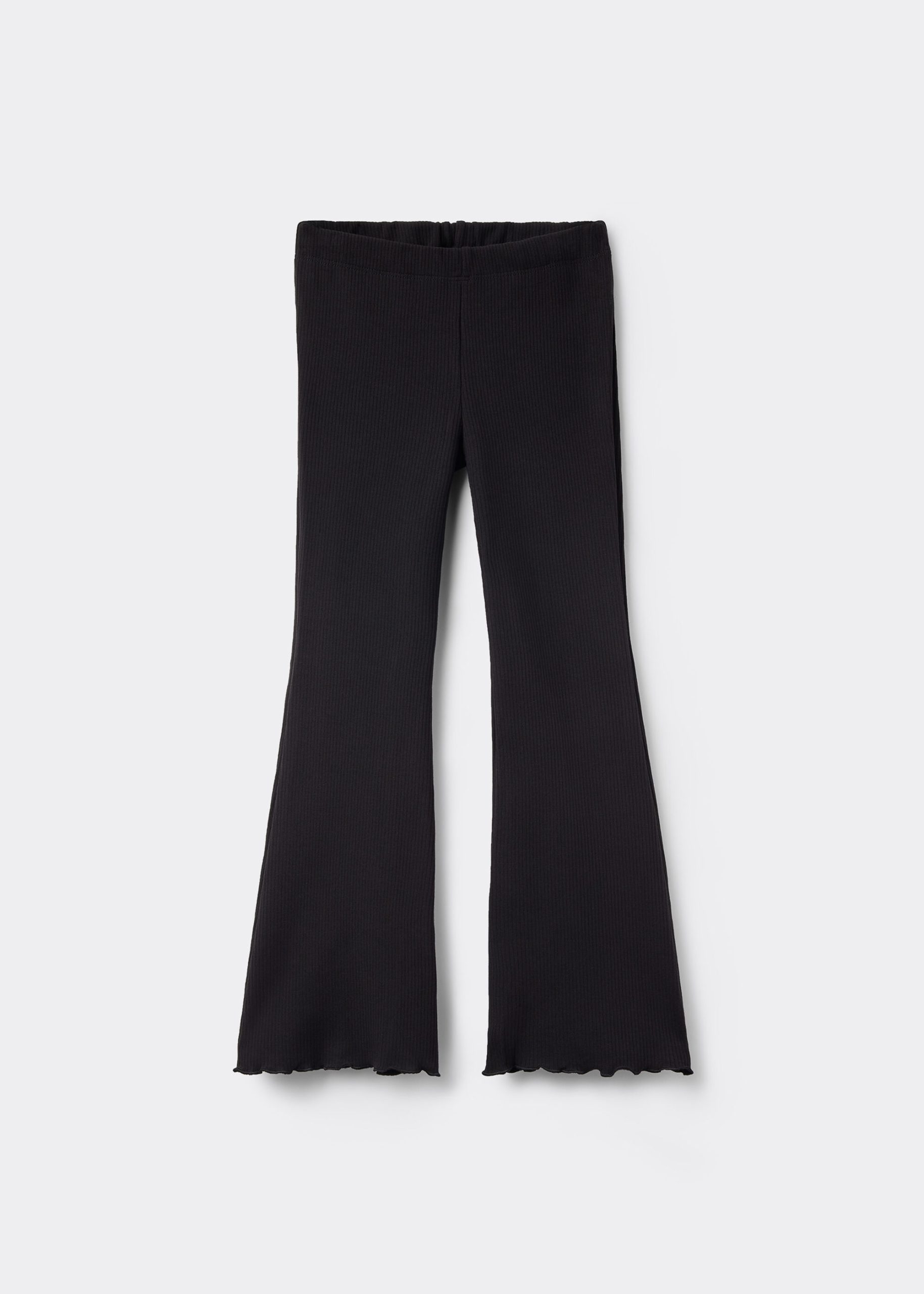 Girls’ flared leggings in ribbed thermal cotton, warm and comfortable. Lettuce leaf trim at the hem and practical adjustable inner elastic at the waist for a perfect fit.