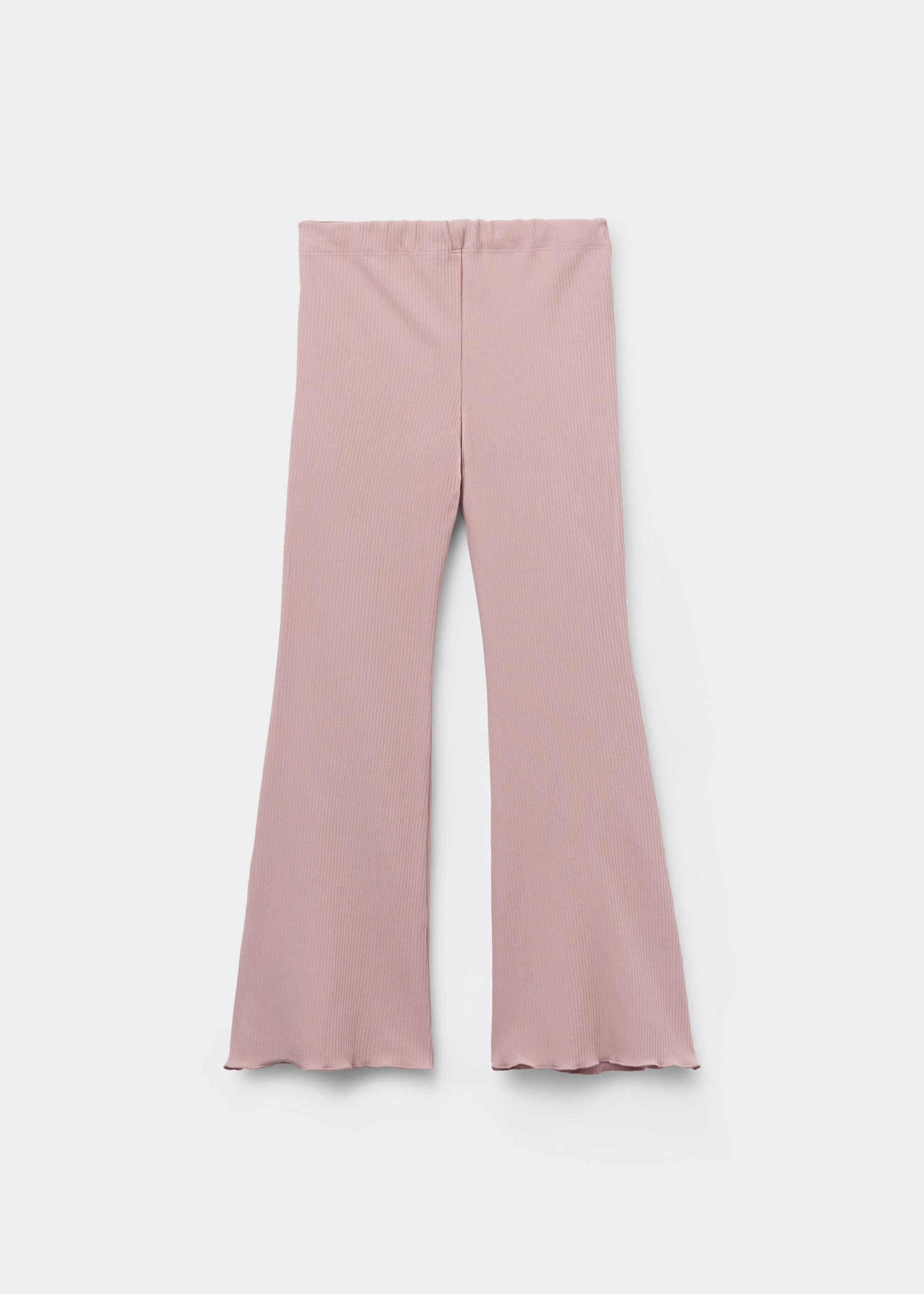 Girls’ flared leggings in ribbed thermal cotton, warm and comfortable. Lettuce leaf trim at the hem and practical adjustable inner elastic at the waist for a perfect fit.
