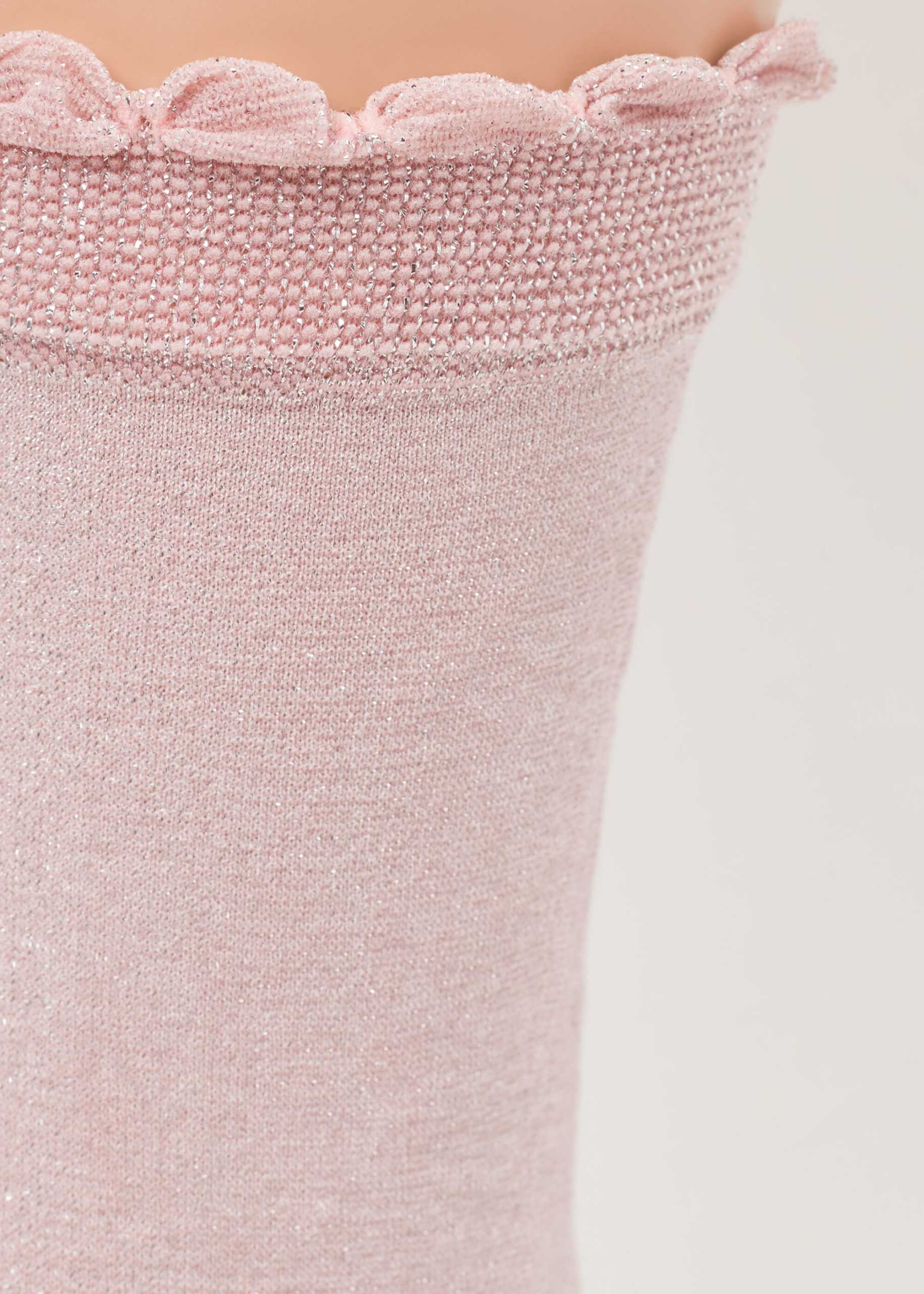 Girls’ 60 denier opaque short socks with glitter trim and scalloped edge.