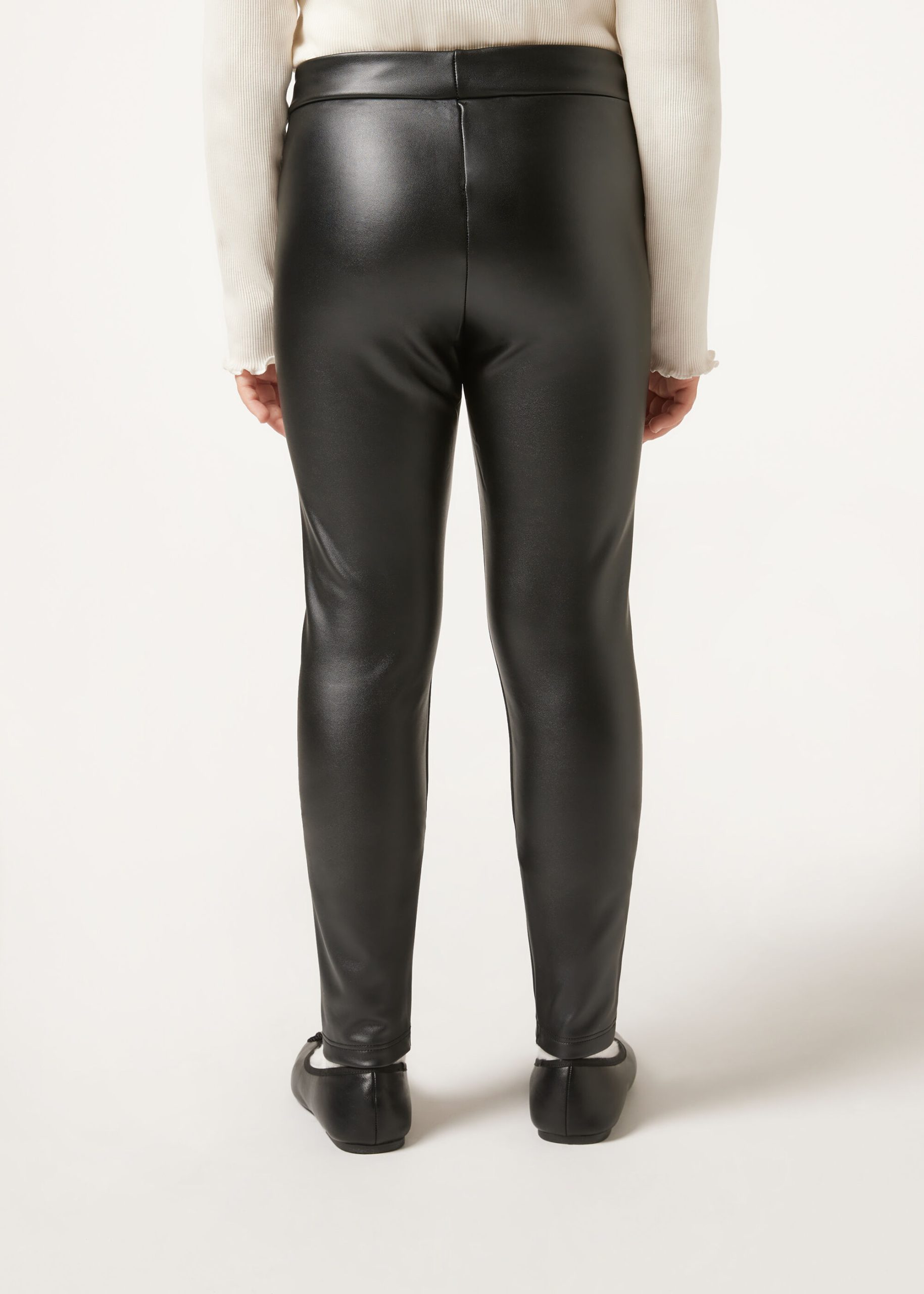Girls’ leather effect thermal leggings. The brushed fabric inside gives it a warm, pleasant feel against the skin, recommended for the colder months. Comfortable waistband for the perfect fit.