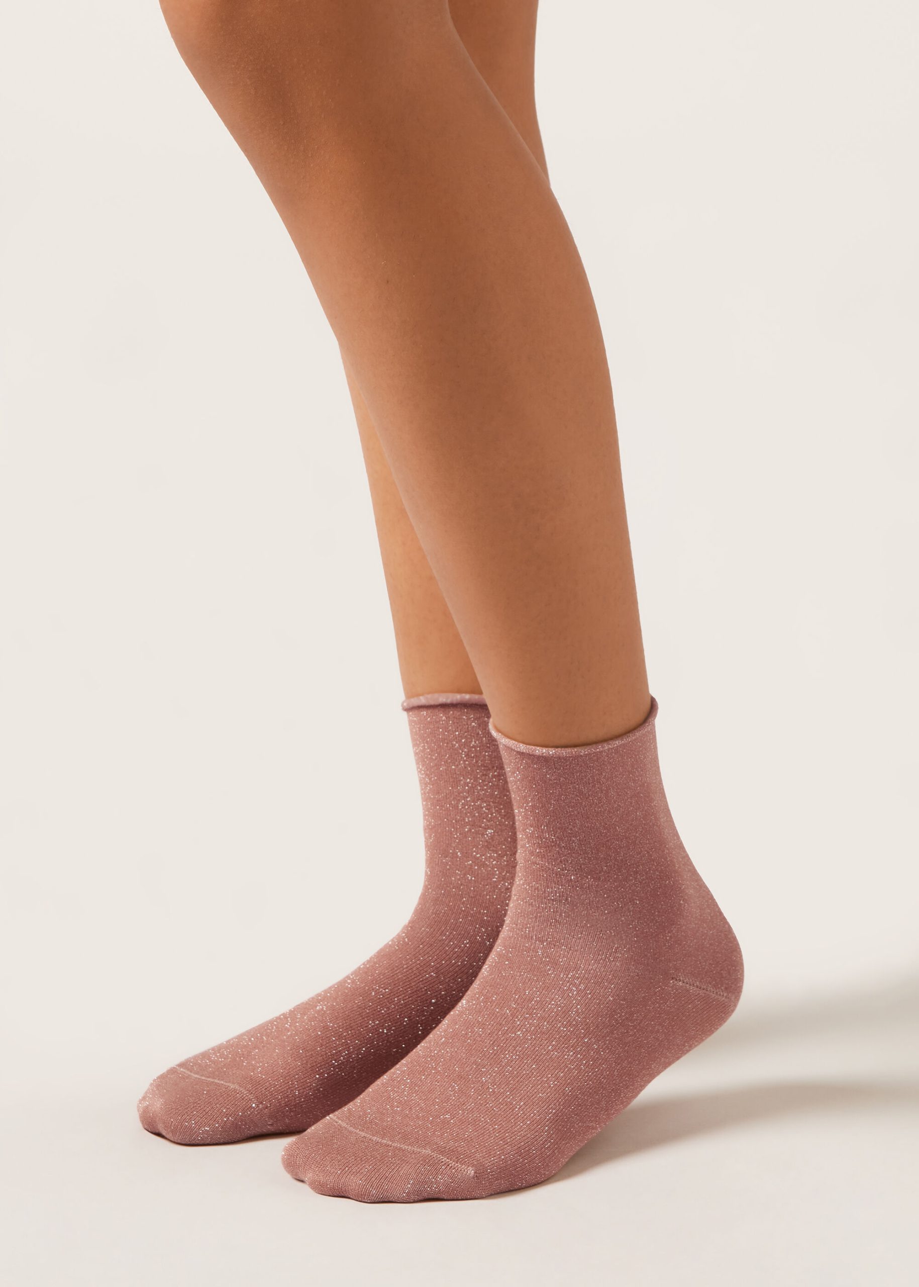 Women’s short socks with glitter trim and comfort edge, for a shiny and cozy touch.