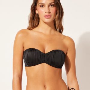Graduated Padded Bandeau Swimsuit Top Shiny Satin