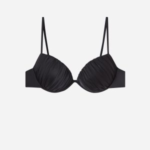 Graduated Padded Push Up Swimsuit Top Shiny Satin