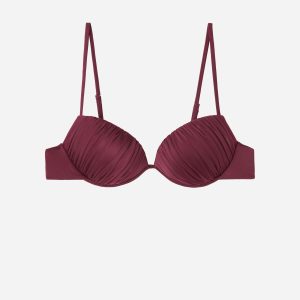 Graduated Padded Push Up Swimsuit Top Shiny Satin