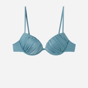 Graduated Padded Push Up Swimsuit Top Shiny Satin