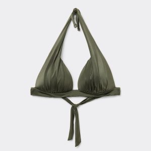 Graduated Padding Triangle Swimsuit Top Shiny Satin