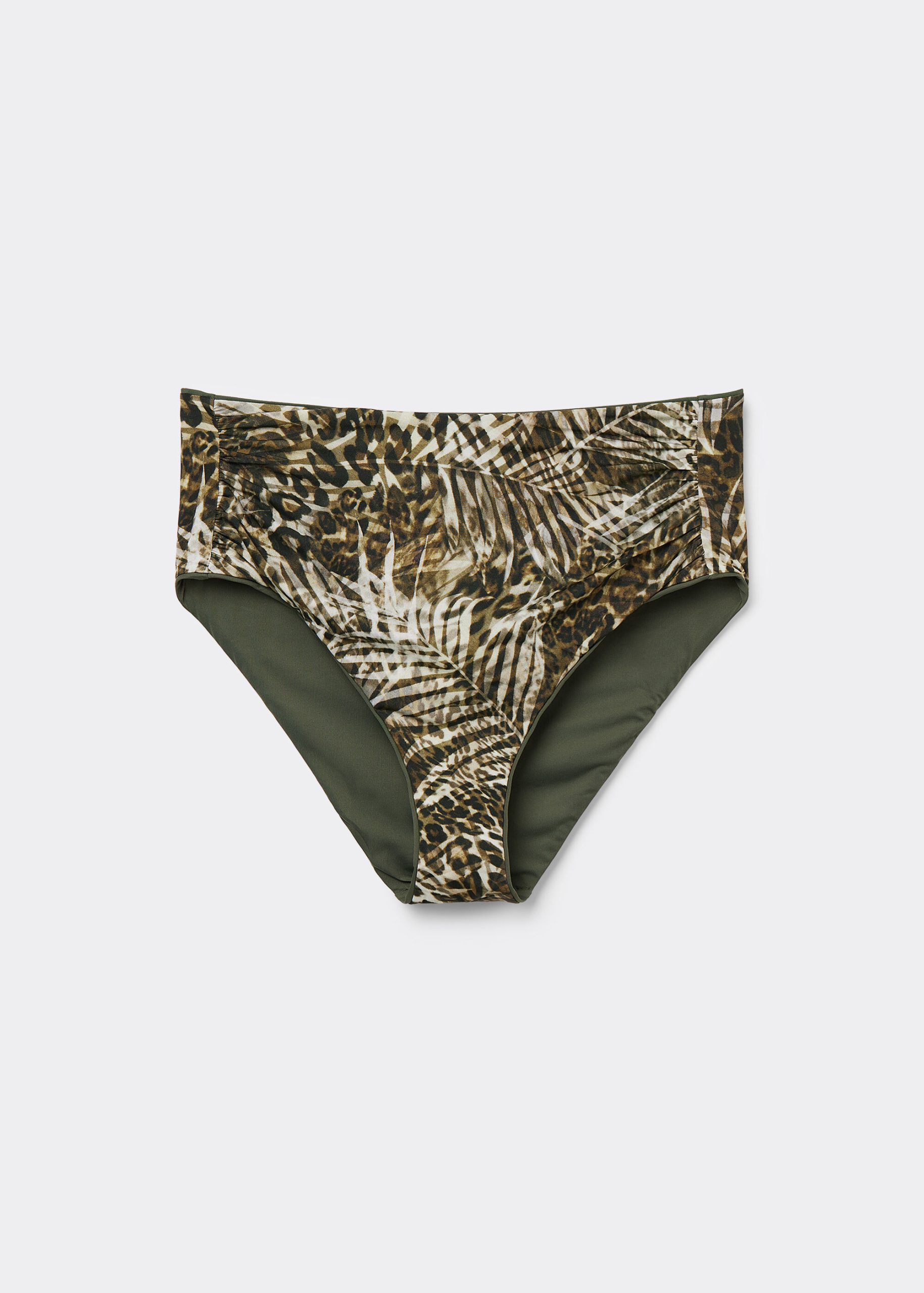 Bikini bottoms with a high waist with a shaping effect on the abdomen, guaranteed by a special tulle at the front. Reminiscent of animal print, the foliage pattern brings together exotic leaf designs with motifs that evoke markings from the animal world. Fully lined with invisible seams.