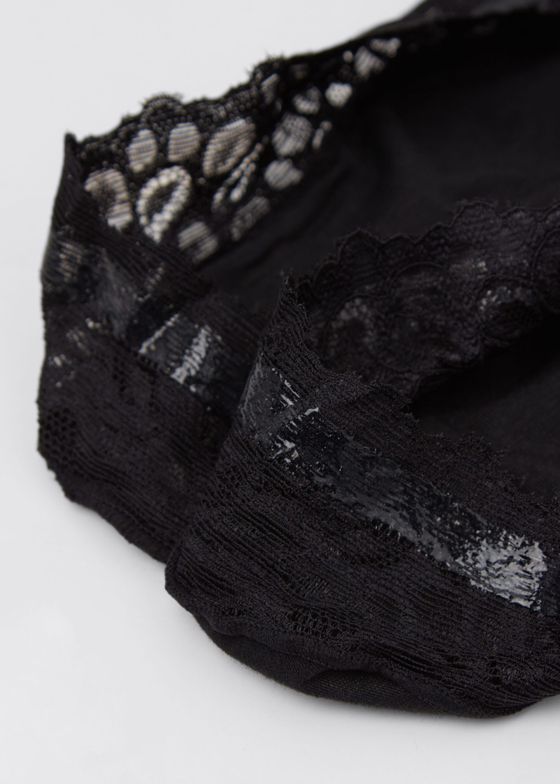 Women’s invisible socks in refined lace with comfortable cotton soles, ideal for low vamp shoes. They combine elegance and comfort with a discreet and feminine design.