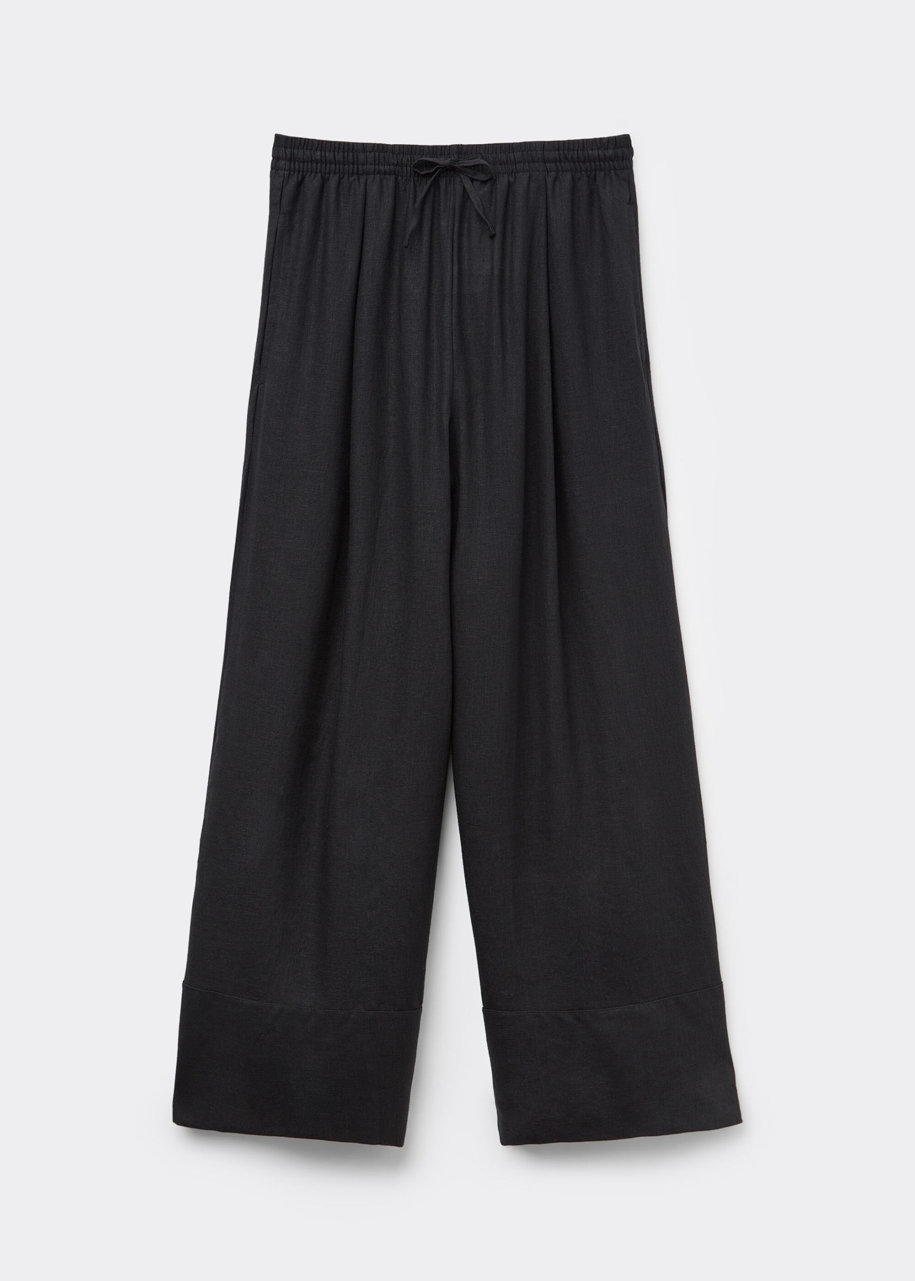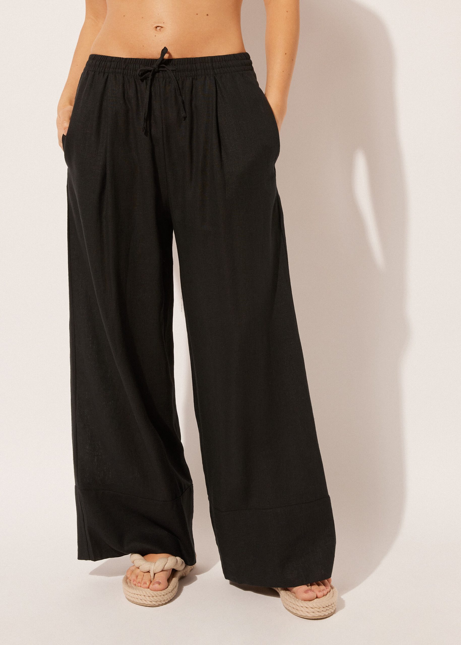 Palazzo pants in linen and viscose, perfect for those who love natural fibers. With a relaxed and comfortable fit, these pants offer a fluid and modern design, perfect for pairing with the 0BDA143 shirt.