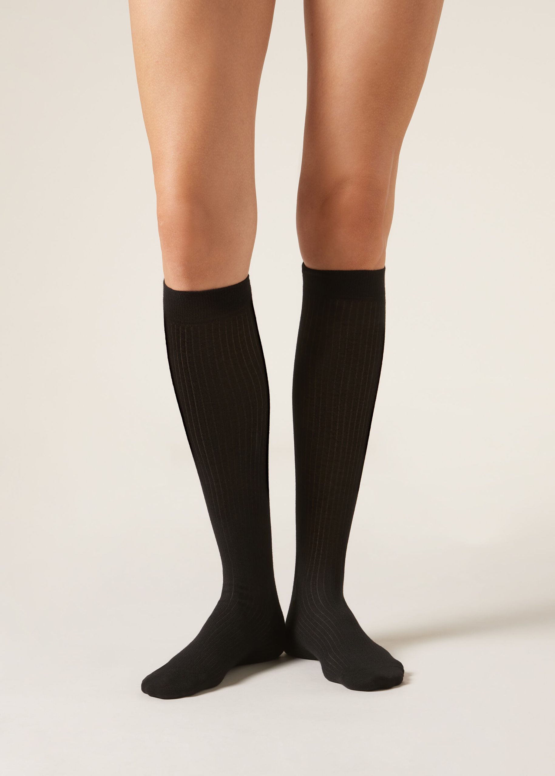 Women’s long ribbed cotton socks. This design offers optimal comfort and fit, ideal to wear in different seasons.