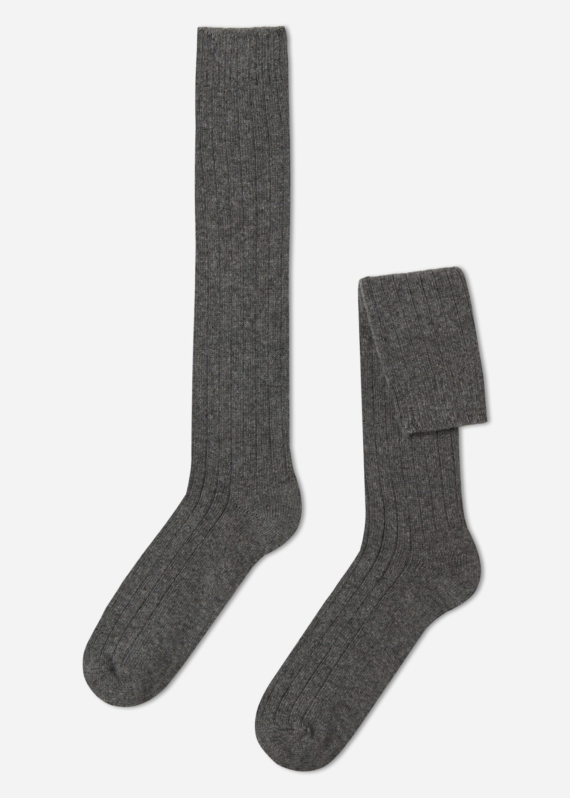 Men’s long ribbed socks with wool and cashmere, a warm and comfortable material.
