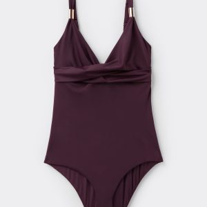 One piece swimsuit with a deep neckline, featuring wireless and unpadded cups for a natural effect. The structure of the cups and the wide fit at the sides provide good support for larger busts. The compact fabric, designed to exalt and enhance the body’s curves, ensures excellent containment and is studied to make every woman feel at ease without constraint. Adjustable shoulder straps. Back closure with two hook-and-eye closures to improve the fit of the underband. Regular bottoms coverage in back.