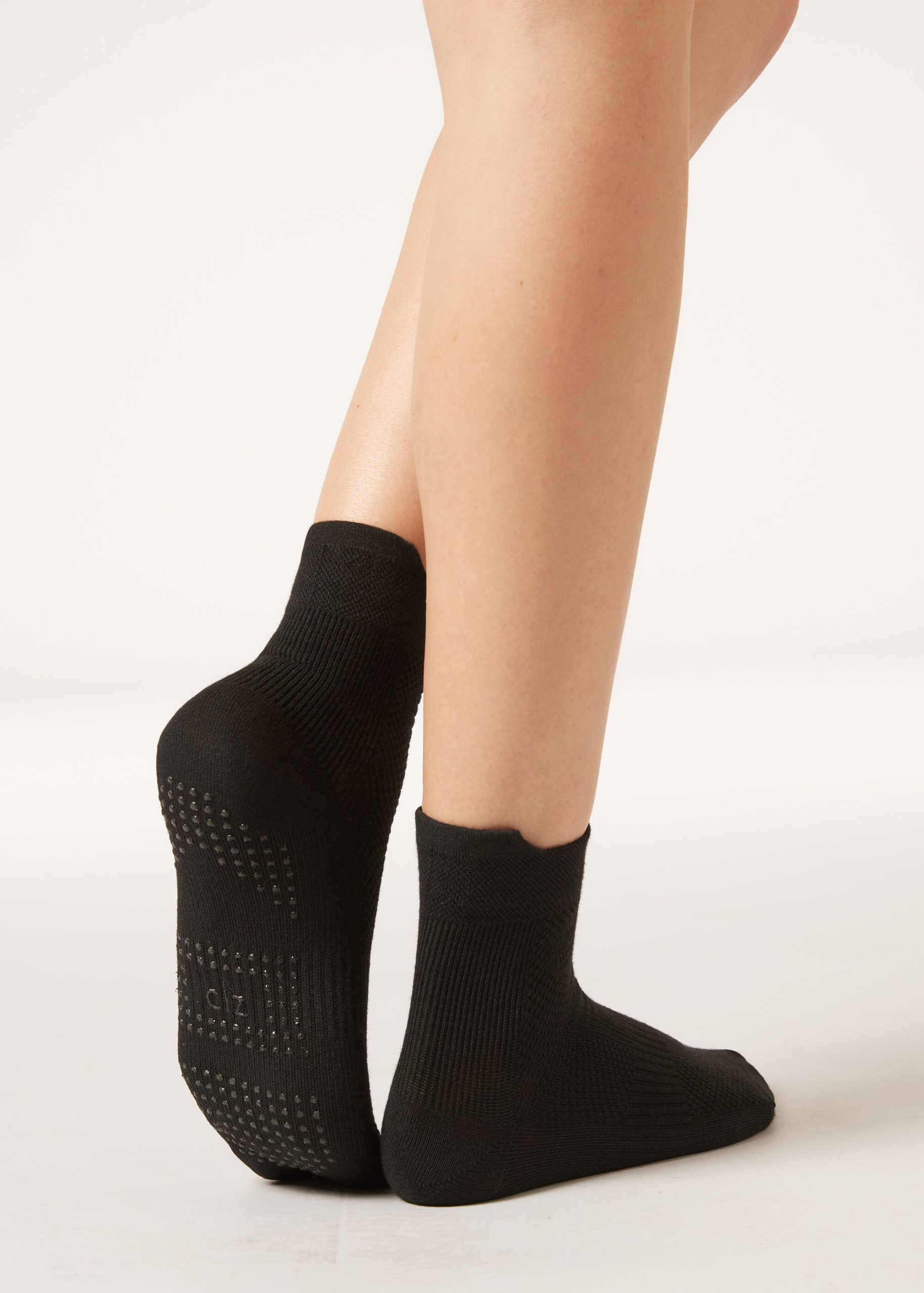 Women’s non-slip socks ideal for pilates and yoga, made from breathable technical yarn. Equipped with elastic bands for a perfect fit and non-slip grip on the insole and toe for maximum stability during practice.