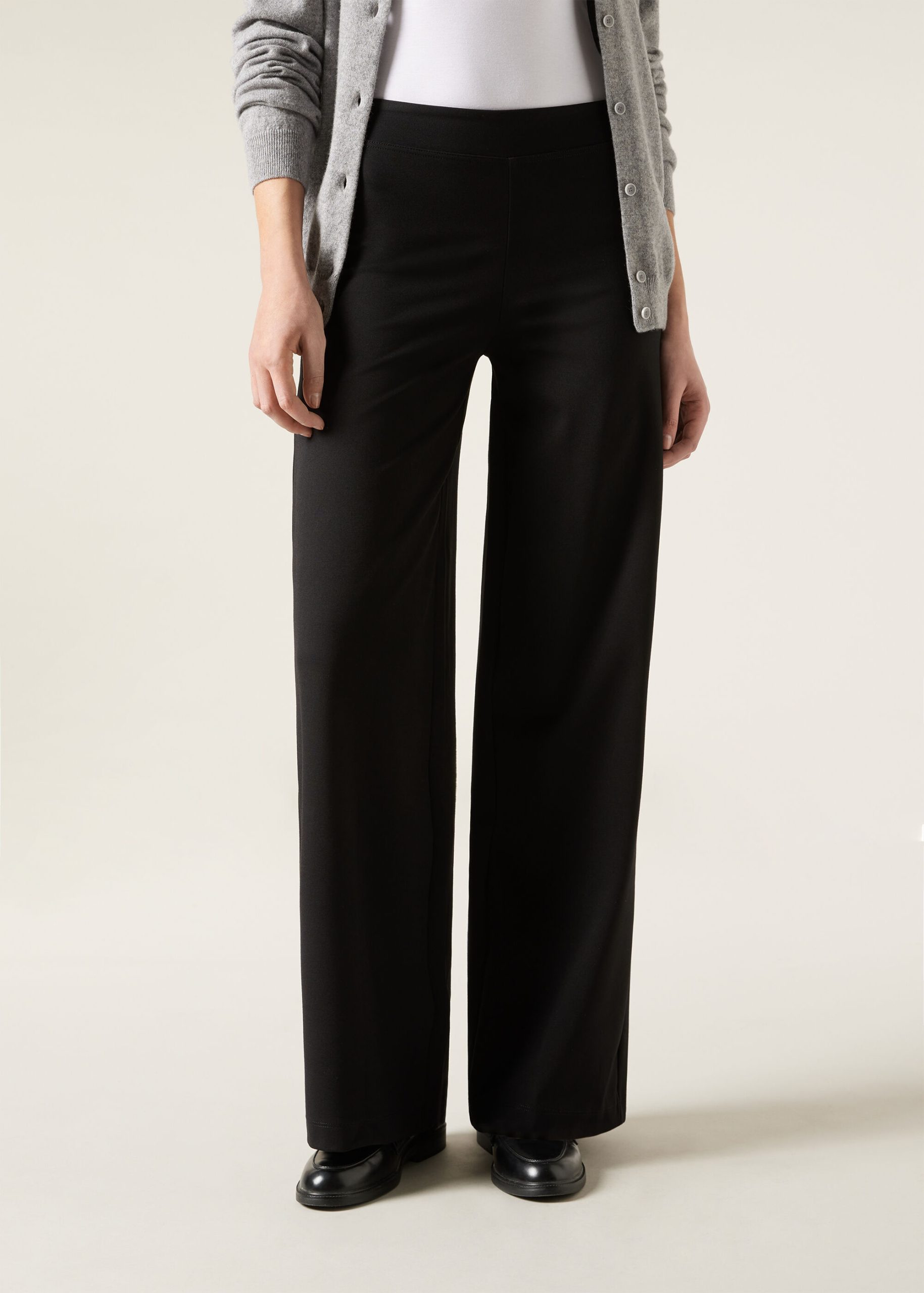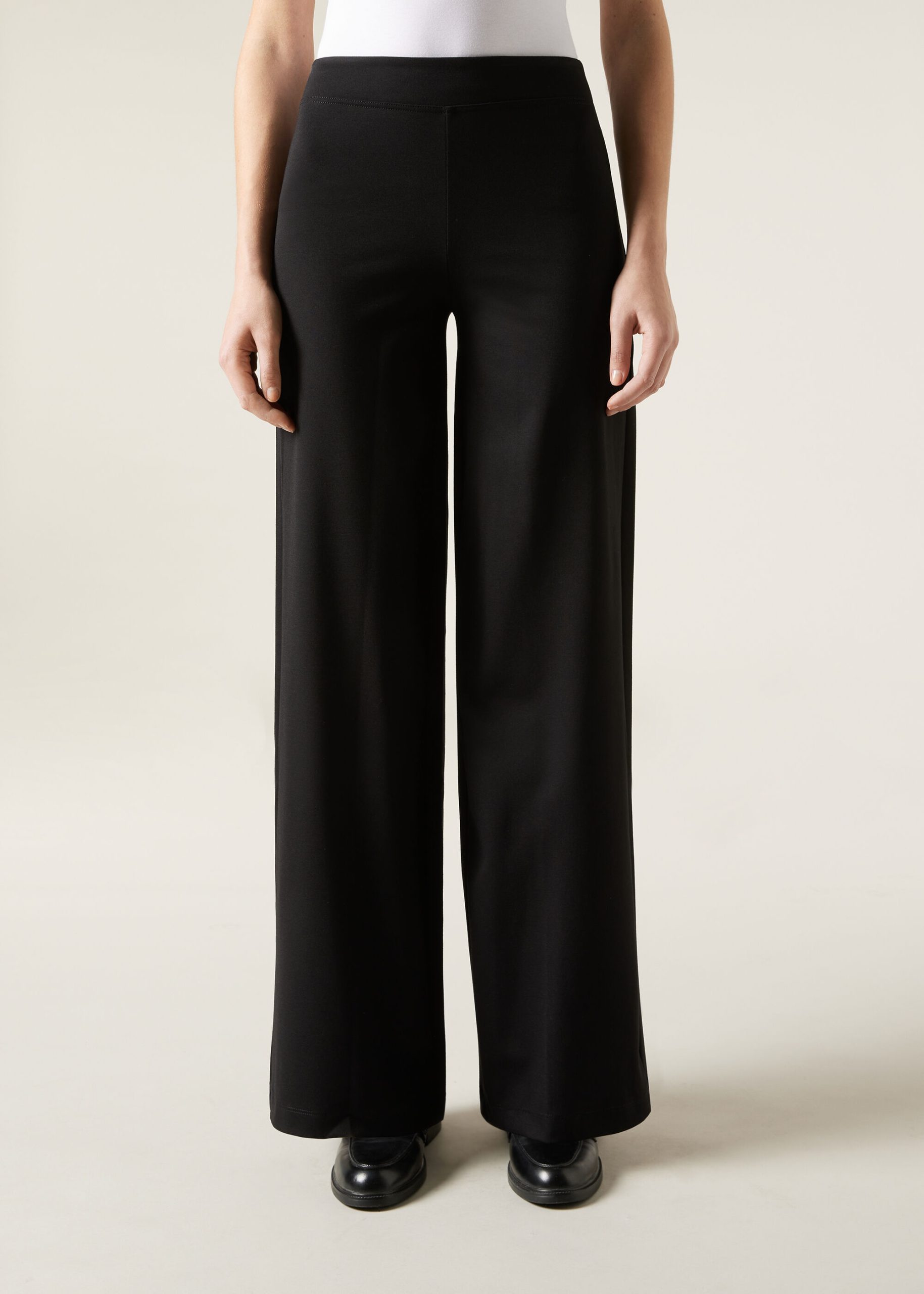 Women’s flared leggings made of punto Milano. Comfortable soft elastic waistband.