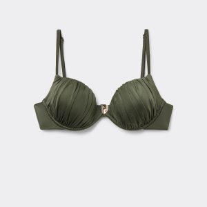 Push-up bikini top with lightly padded cups and underwire to guarantee support and provide volume. The style features a bright fabric with a silky effect. Fixed Shoulder Straps. Rear closure with double adjustment hook.