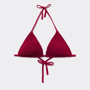 Removable Padding Triangle Swimsuit Top Crinkle Waves