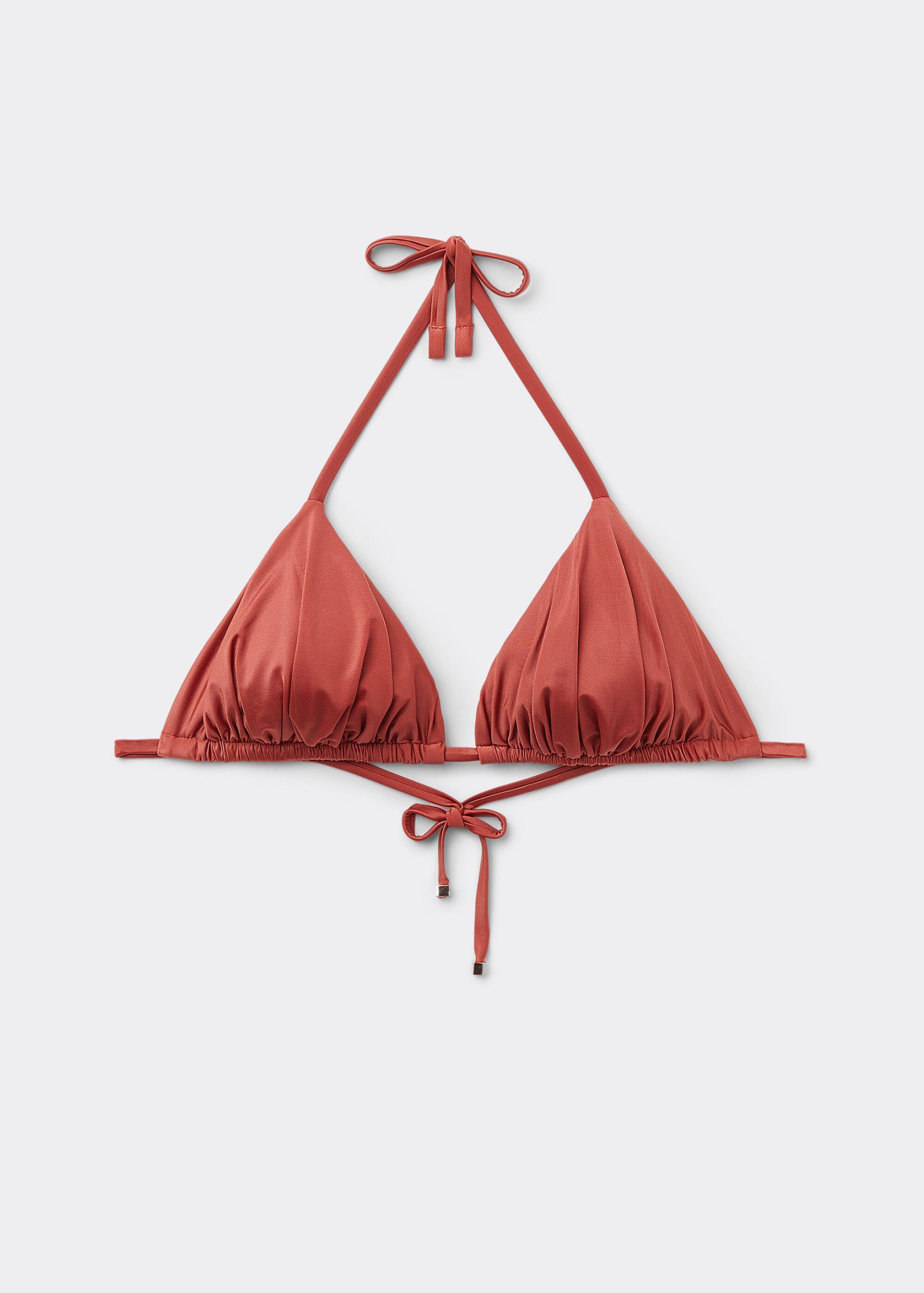 Removable Padding Triangle Swimsuit Top Shiny Satin