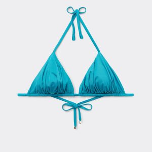 Removable Padding Triangle Swimsuit Top Shiny Satin