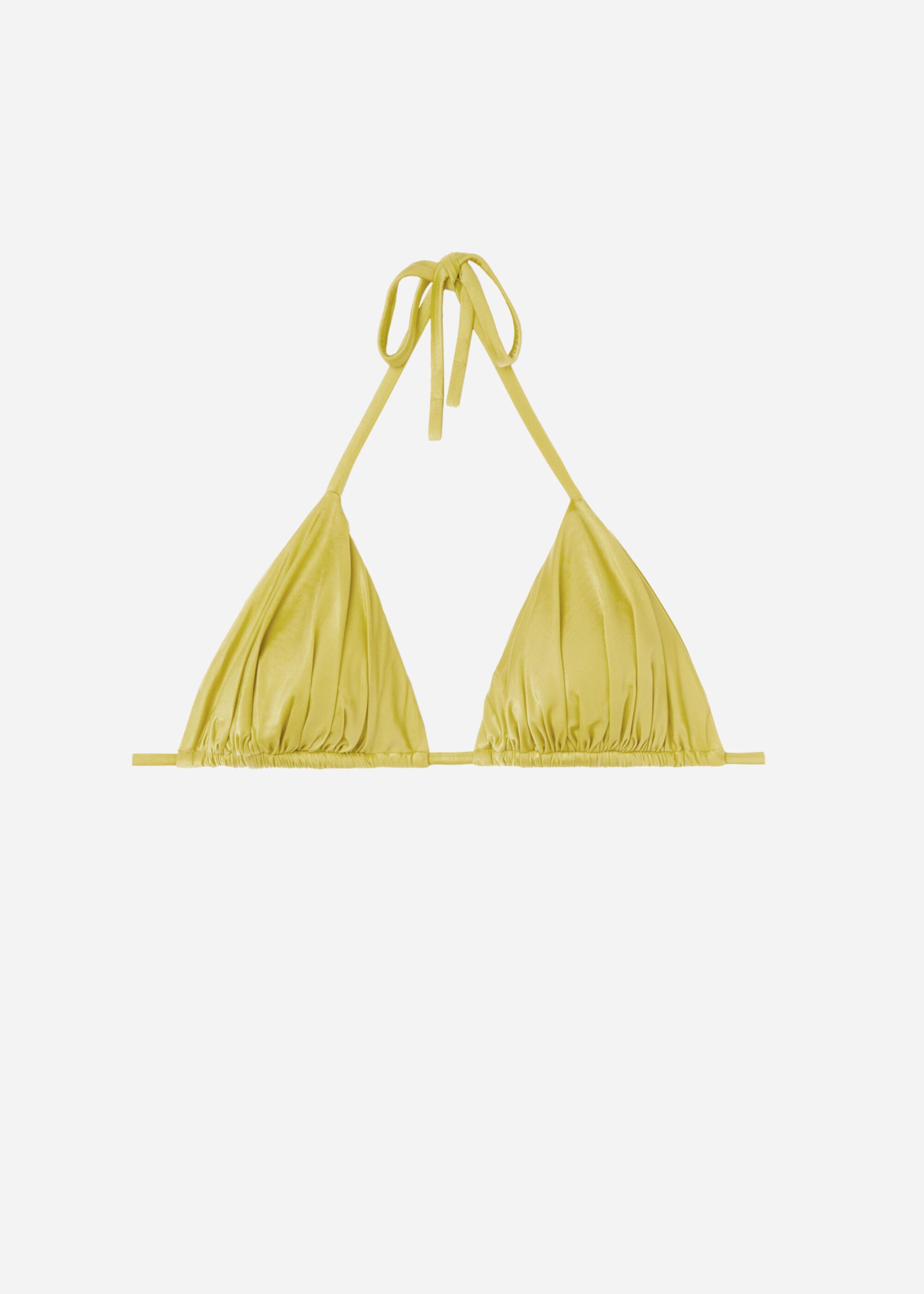 Removable Padding Triangle Swimsuit Top Shiny Satin