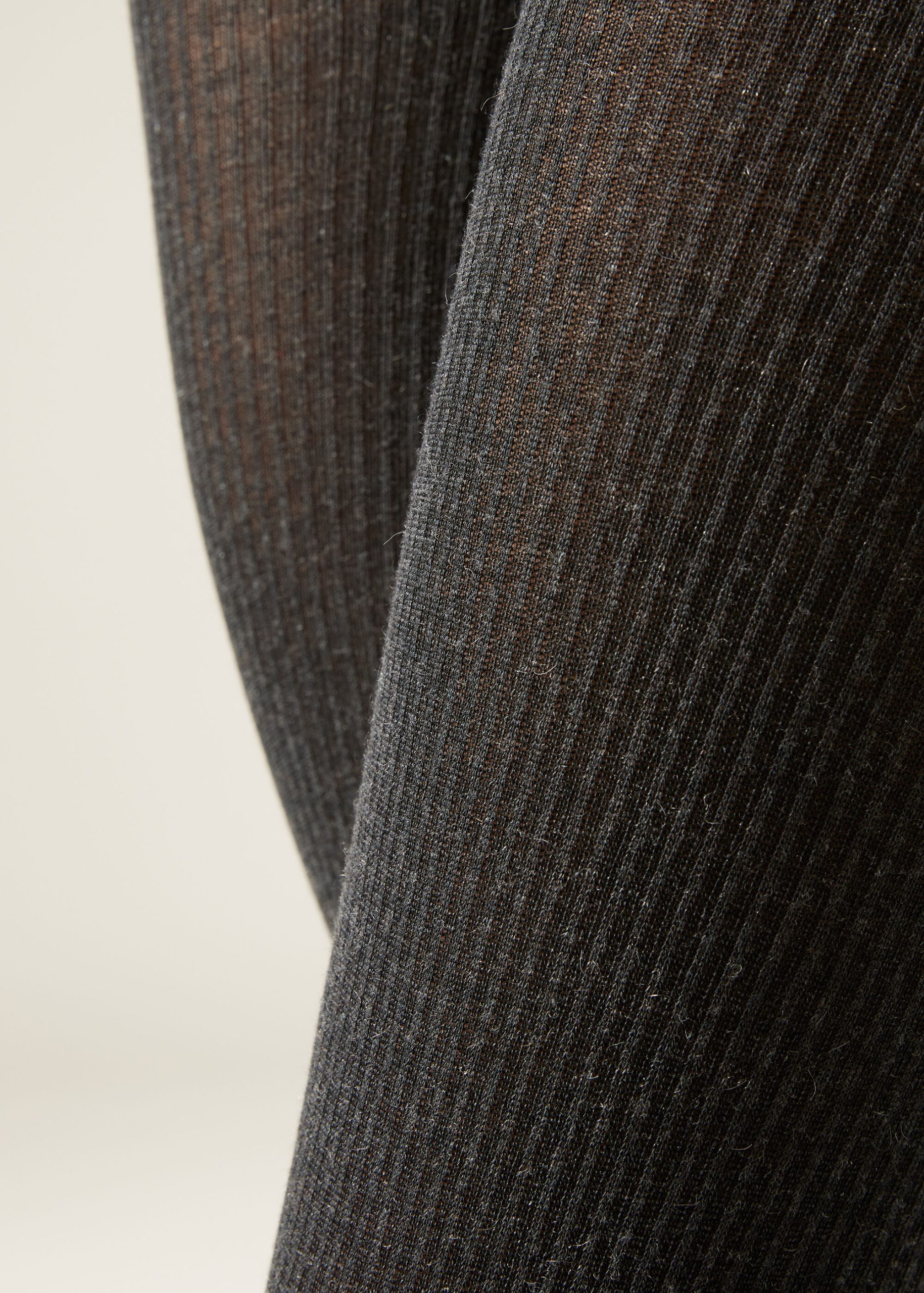Women’s ribbed cashmere blend tights, warm and cozy. Cotton gusset.