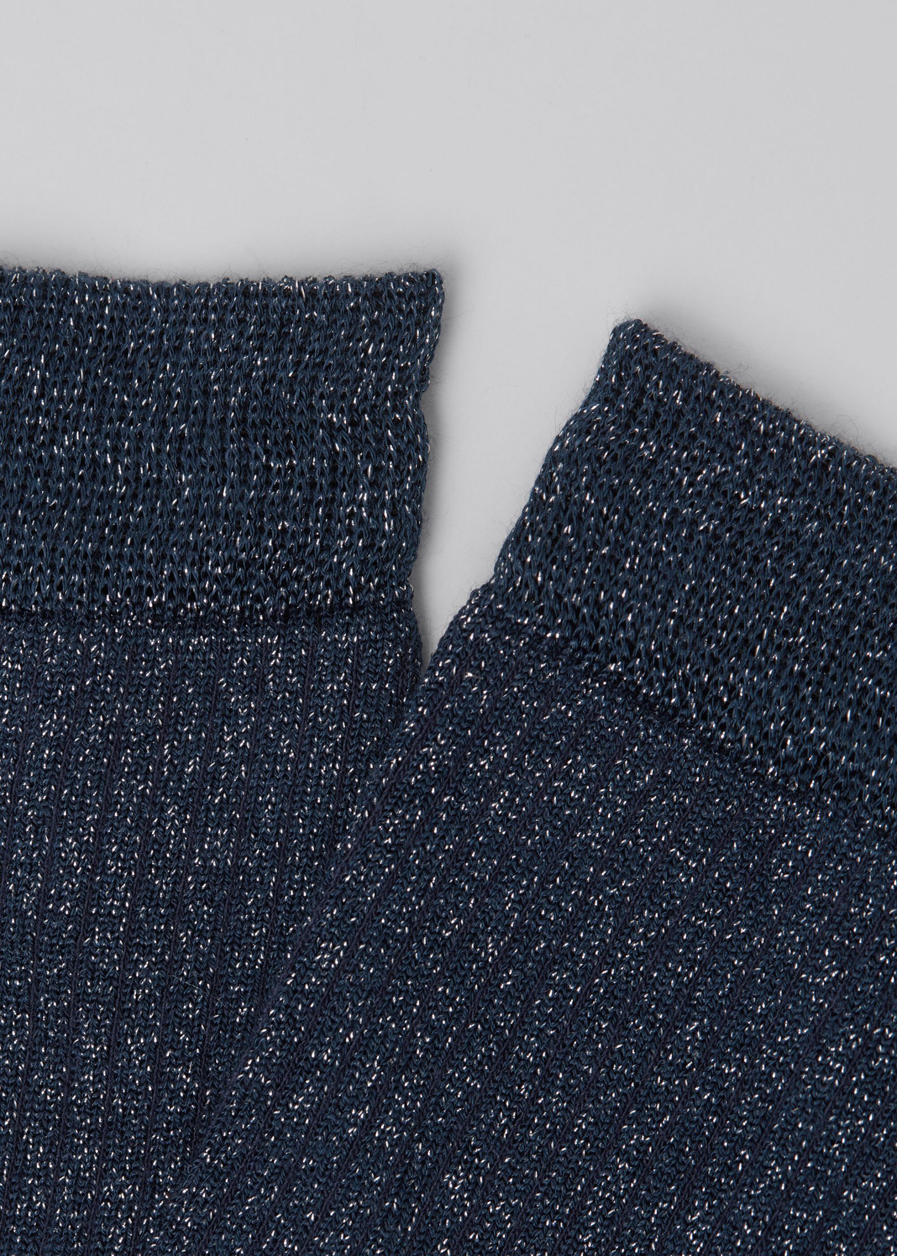 Women’s ribbed short socks with glitter-embellished cuffs, ideal to add a touch of sparkle and style to your wardrobe. Made with soft and comfortable fibers, they guarantee comfort and optimal fit. Perfect to complete each outfit with a touch of glamour, either for special occasions or everyday.