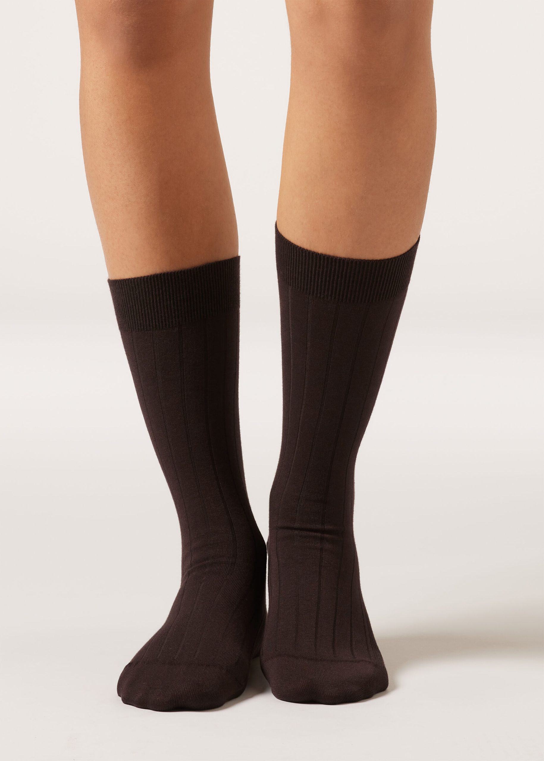 Women’s mid-calf socks in soft, wide-ribbed cotton combine comfort and style. The mid-calf height makes them versatile for any outfit. Ideal for those looking for a classic look and a feeling of pure comfort.
