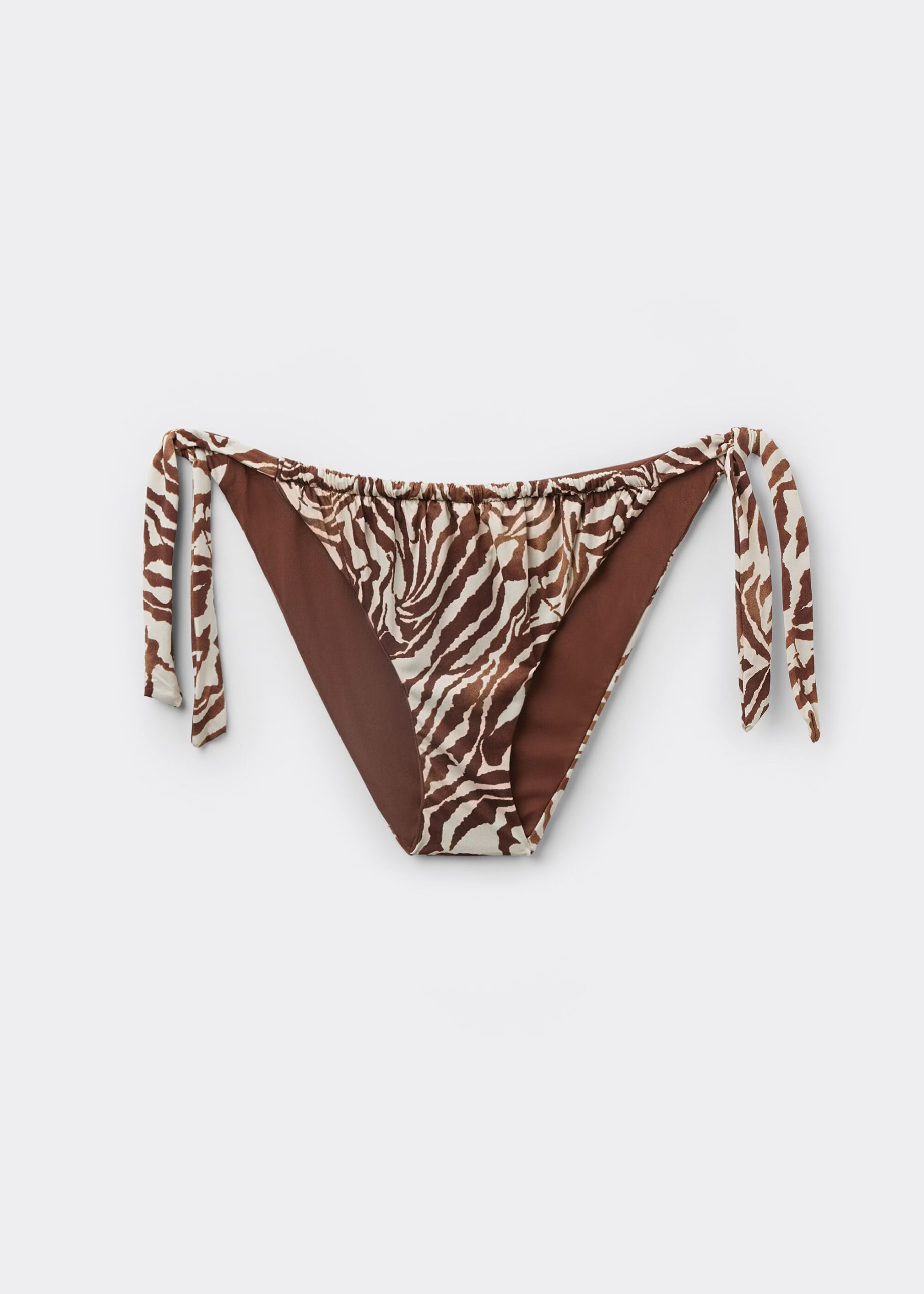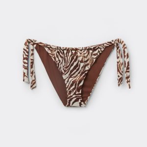 Side Tie Bottom Swimsuit Brown Zebra