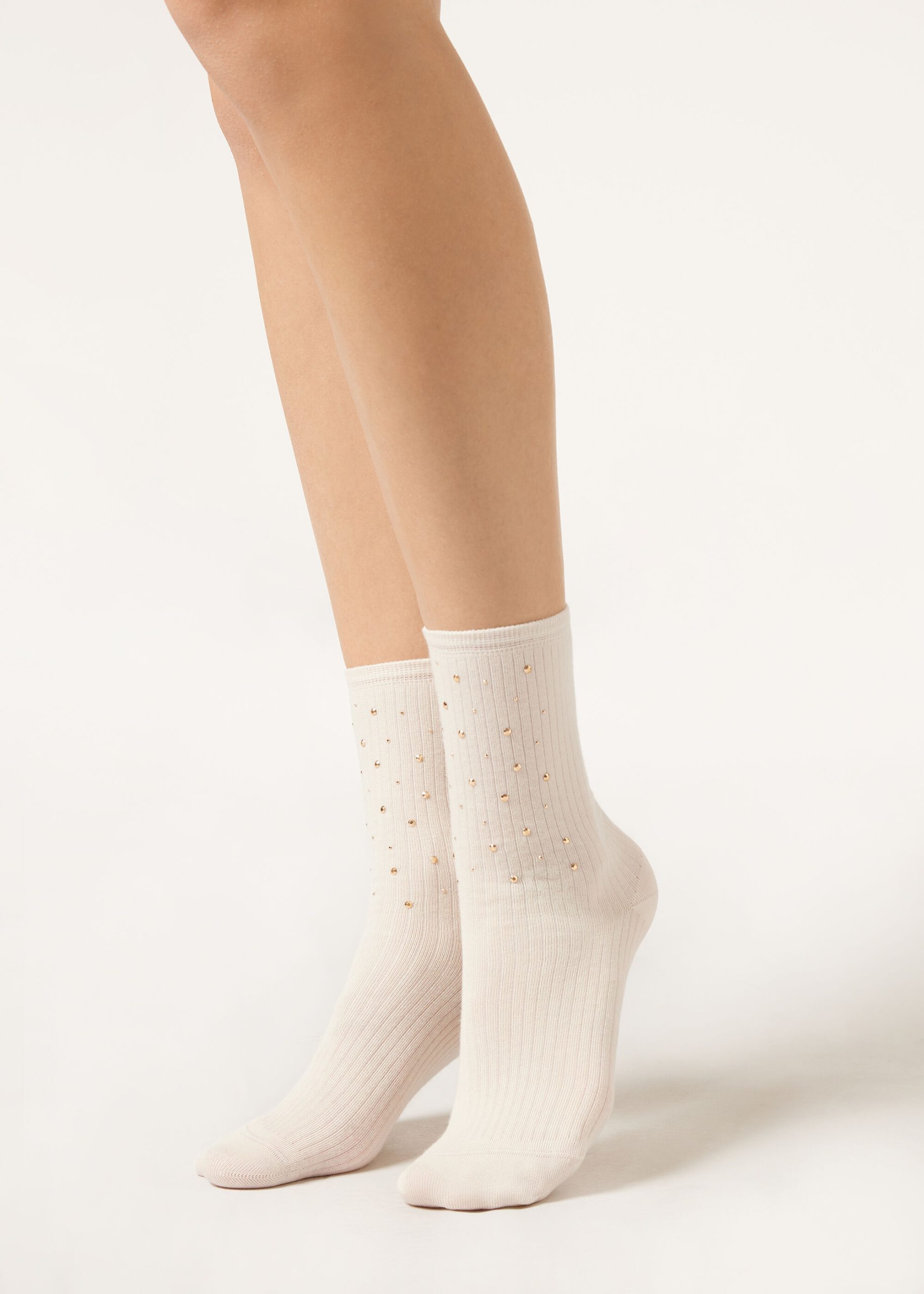 Women’s short socks in soft ribbed cotton combine comfort and a luminous style. The front stud appliqués make them unique, perfect for adding a rock-chic touch to your look.