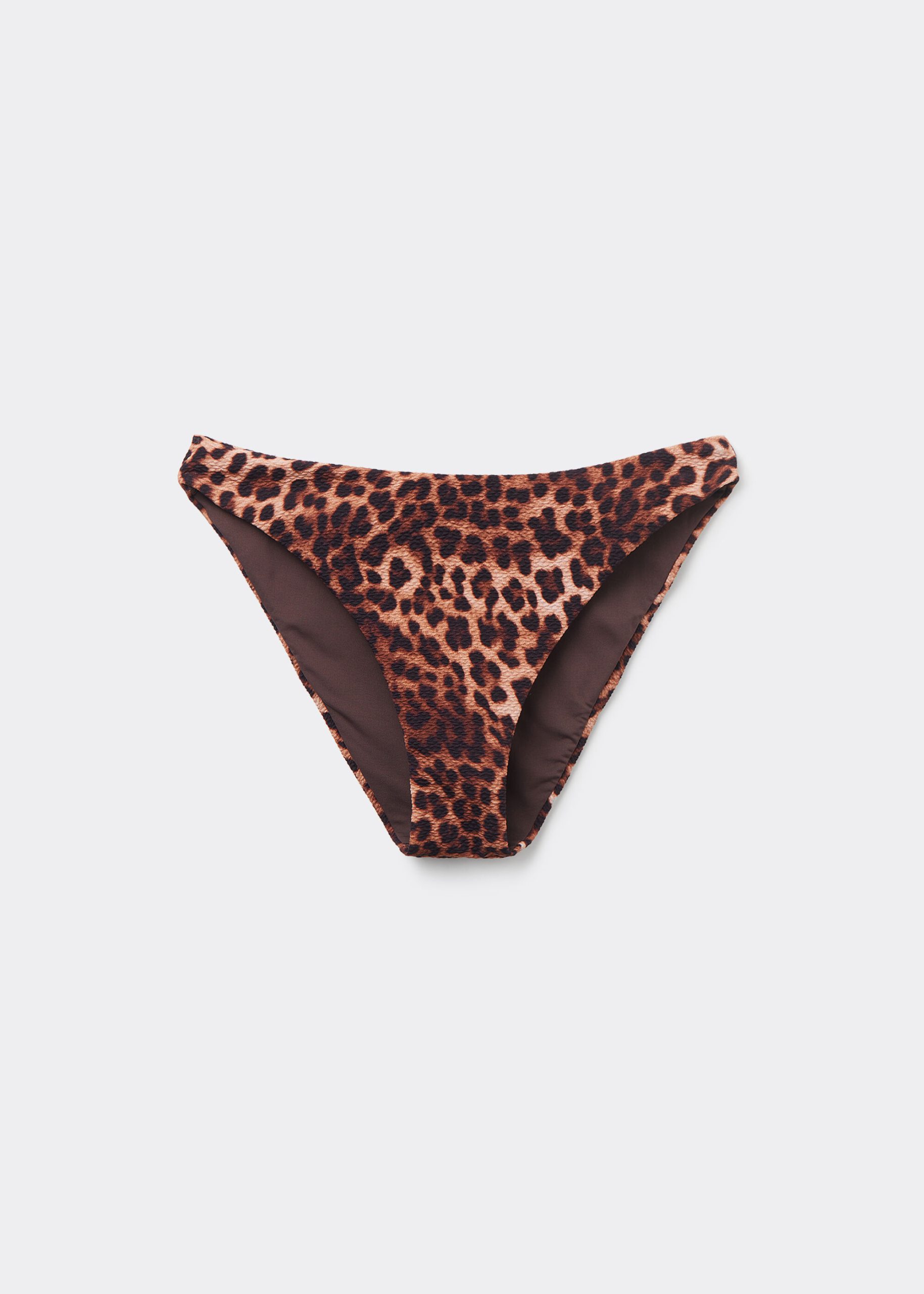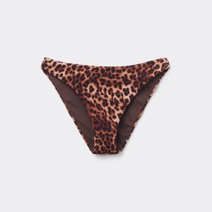 Fully lined bikini bottom with invisible seams in an elegant animal patterned fabric. The slightly rounded waist at the front allows for both a classic or more high-cut fit, depending on one’s physique.