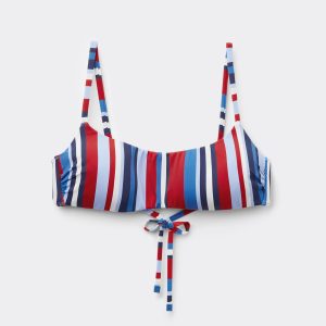 Wireless tank style bikini top with light padding that naturally shapes the bust and guarantees good support. Made from soft microfiber, the top is embellished with a vibrant multi-colored striped pattern, which adds a touch of freshness and color to the look. The side boning helps to support the bust. Adjustable thin shoulder straps. Back string tie closure.