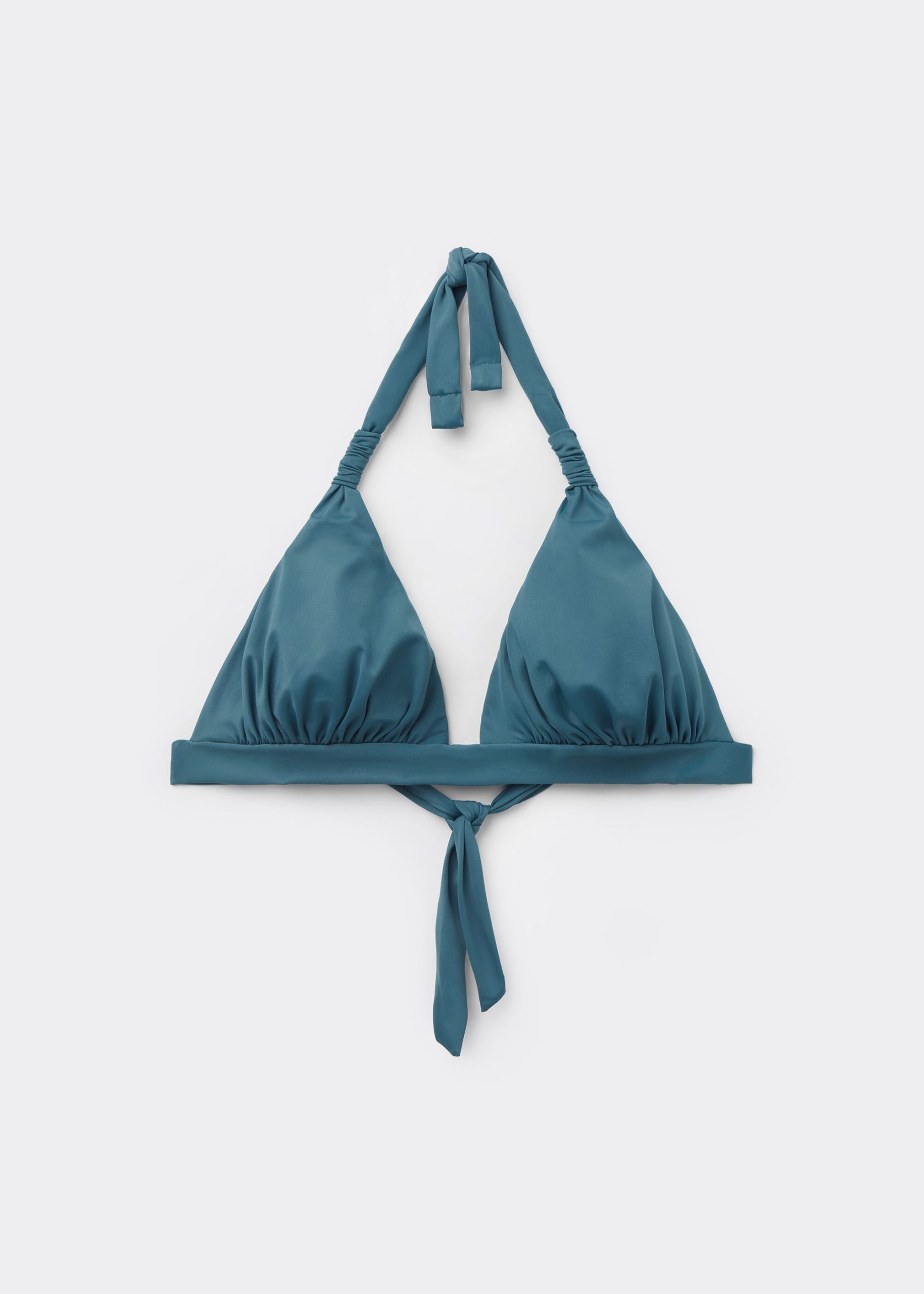 Wireless triangle bikini top with light removable padding. The compact fabric, designed to exalt and enhance the body’s curves, ensures excellent support and is studied to make every woman feel at ease without constraint. Adjustable shoulder straps. Back closure with two hook-and-eye closures to improve the fit of the underband.